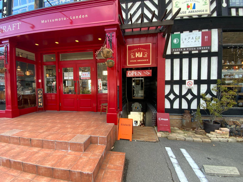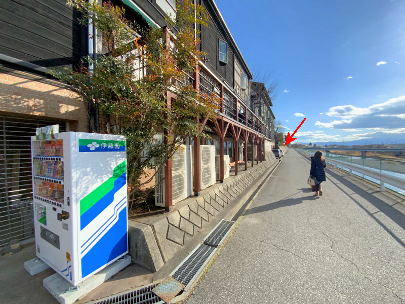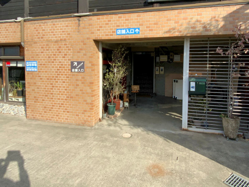車からルビーも車から降りて(店舗入口)と書かれた先の階段上り店舗前に着く。