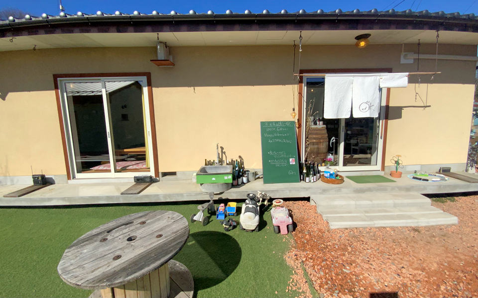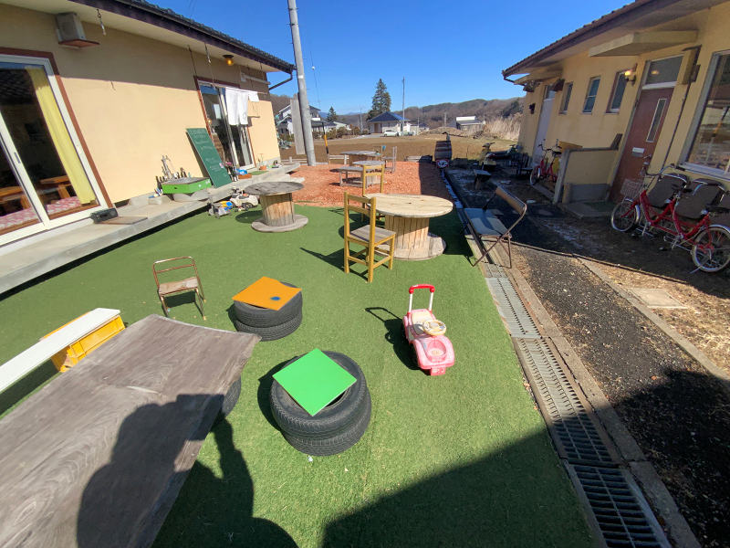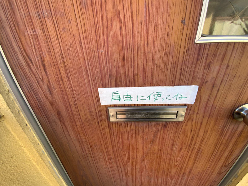 反対側(テラス席の南側)の建物にドアに「自由に使ってね」と書いてある。