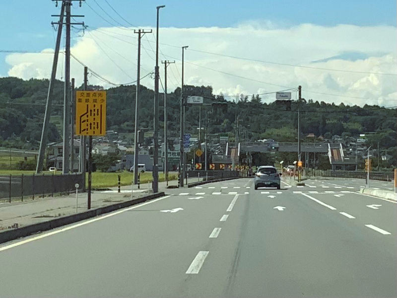 E信号先幅員減少右車線へ |