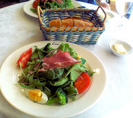 量が多いし、葉っぱはベイリーフやルッコラです。それにトマトとゆで卵、そして生ハム!。カフェで頼んだら、これだけで1,000円は、とられそうです。