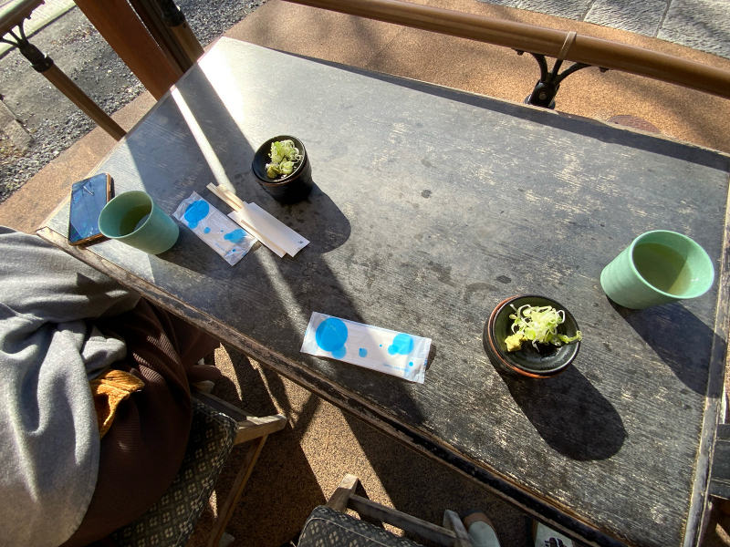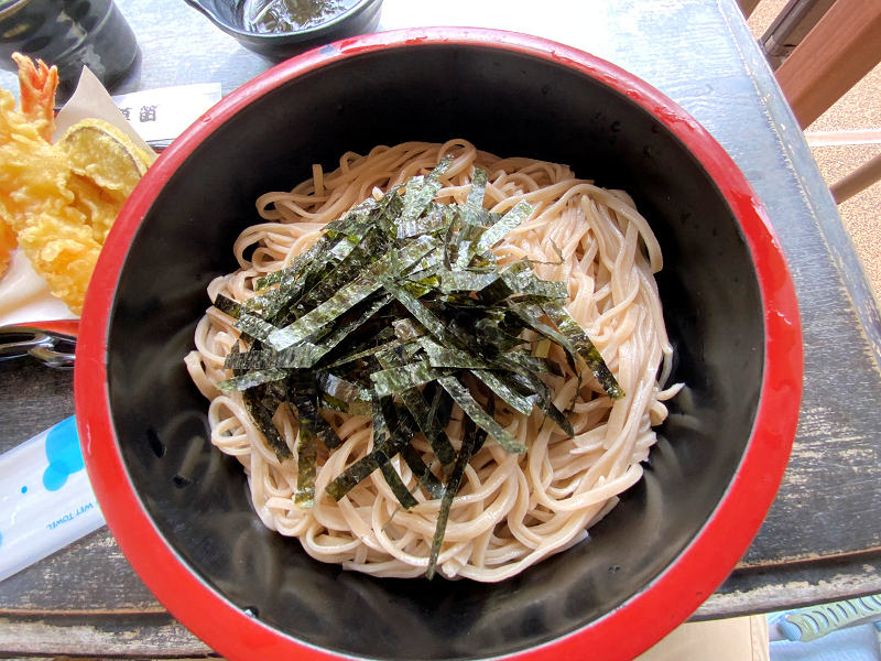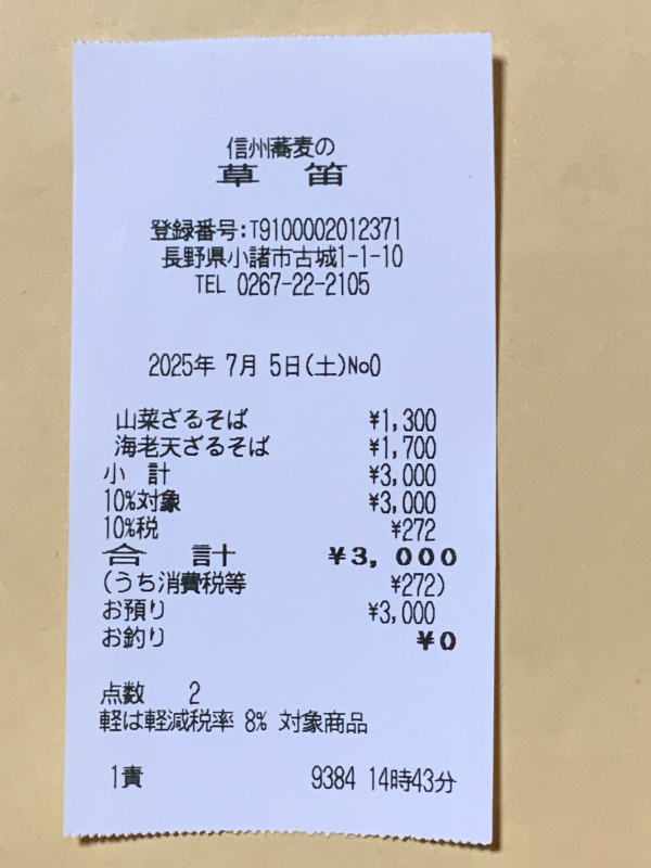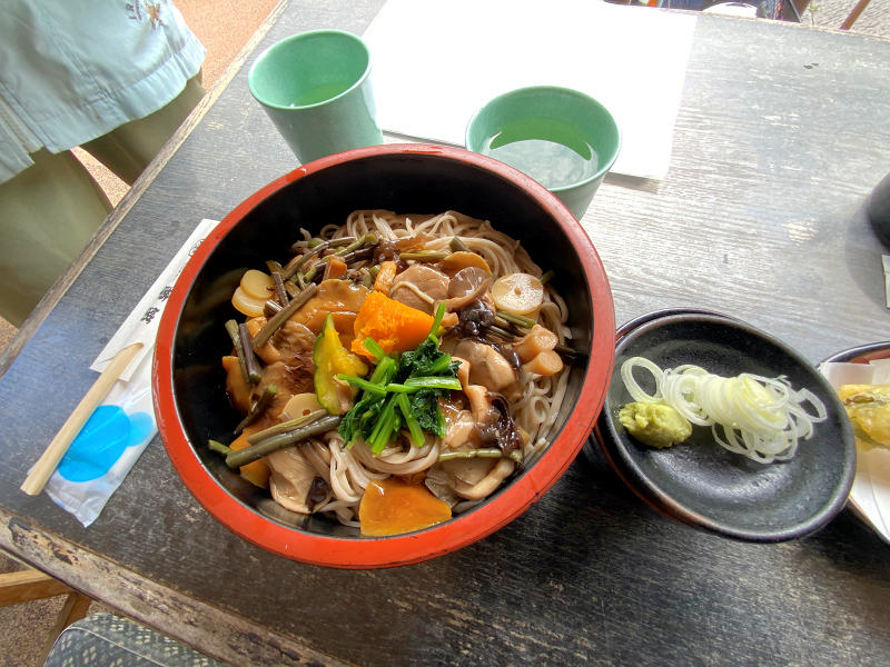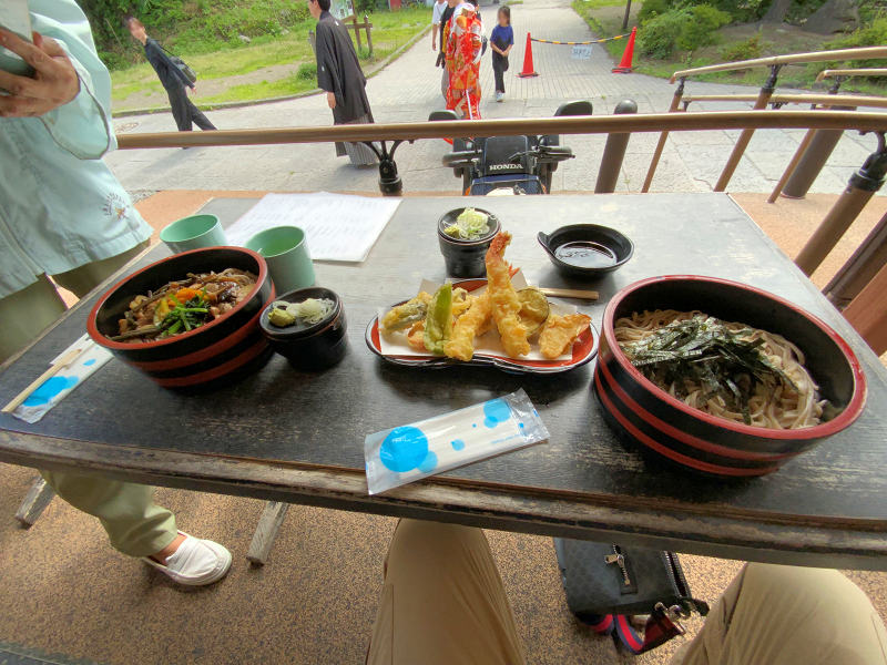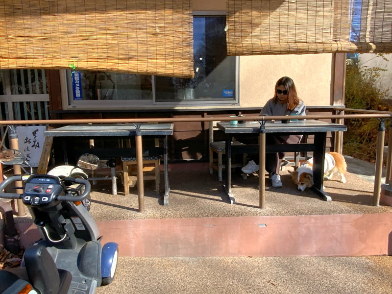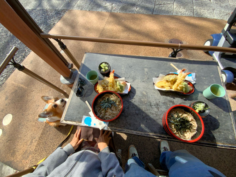 草笛小諸本店は昔から有る老舗の蕎麦店てす。調べたら1961年(昭和36年)創業で今年で64年目。 ホームページにあるように支店が佐久市と上田市(2店舗)と長野駅の駅ビルにも有ります。東御市にも「ふるさとの草笛(HPに支店に載って無いが多分所縁が有る?不明)」。 昨年、懐古園へ紅葉を観に行った時、外のテーブルで犬連れ客を見かけた、が順番待ちの列。 空腹で待てずこの日は停車場ガーデンでランチでした。 後日行って来ました(この時のYouTubeはこちら)。入口前に順番待ちの紙置いてあって名前記入、店員さん出て来て紙を確認していたので私「私外のテーブル希望です」「ワンちゃん一緒ですね、直ぐに案内出来ます」外のテーブルは2組、この日天気が良く暖かい。 草笛総本店 小諸蕎麦切り四百年の 伝統を継ぐ お名前と人数をご記入の上お待ち 下さい(犬連れは犬の字も記入) メニュー 裏側に藤村そばの説明 メニューが来て(やっぱりざる蕎麦だな、天ぷらも食べたい)海老天ざる蕎麦2人前(1人前1700円)注文。 最初につけ汁来る 海老天ざる蕎麦ぽ(1700円) 待っている間ふと思ったが10日程前に来たかった(紅葉は終わっている、観光客まばら)。ルビーは観光客に尻尾振ってました。 店内の厨房(勘定時撮影) 結構混んでました 蕎麦が来て麺の上に海苔、天ぷら海老が2つ、野菜が中心ですが「りんごの天ぷら」が有る(りんごの天ぷら初めて食べた)蕎麦湯も飲んで店内で勘定して帰宅しました。 今年の7月にも行って来ました。 この日暑くて妻が「ペットカート持って行く」確かに暑い、ルビー足を守るためペットカート車に乗せて向かう。 小諸駅には東西自由通路(エレベーター有)が有って階段使わずに移動出来る。見たところ犬の事について書かれて無いので利用しました。 2025年7月再度利用 (舗装路熱いのでカート) 階段は自由通路 階段とトイレ間の奥に エレベーター有 エレベーター前 地下通路前に表示が有り駅の方へ70m先に自由通路の階段とお手洗いの間奥へ行くとエレベーターが有ります(1階から2階)。 エレベーターの中 エレベーター出て右側へ進む 自由通路移動中 2階で右(懐古園側)進むとエレベーター有ります。1階エレベーター出て裏へ回って懐古園入口前へ行かれます。 奥の突きあたりにエレベーター有 1階から出て裏側へ 裏側に「懐古園入口」案内板有 コンクリートの通路 左側に進むと 懐古園入口前の広場に出ます この日順番待ちの紙に名前と人数(2人)書いてたら店員さん「ワンちゃん連れの方は犬(の字)書いてください、早く案内出来ます」と言ってました。 私前回と同じ海老天ざるそば 海老天右側はりんごの天ぷら (りんごの品種変わっていた、 甘かった) 妻は山菜ざるそば(1300円) メニューと値段変わらず 婚礼?おめでとうございます 7月のレシート (おまけ) CLOVE CAFE 車を停めた「市営大手門公営有料駐車場」近くに有る CLOVE CAFE入口前からちょっとだけ見て、店舗入らず。 HPに「テラス席はワンちゃんもウエルカム!」とある。 更に寄り道して「アトリエドフロマージュ森のチーズテラス」に寄ってみる。チーズフォンデュが人気の店らしい。 右に少し見えるデッキは テラス席になっていた ソフトクリーム (チーズが入っていた)を食べる お店のヤギは屋根の 草を食べていました
